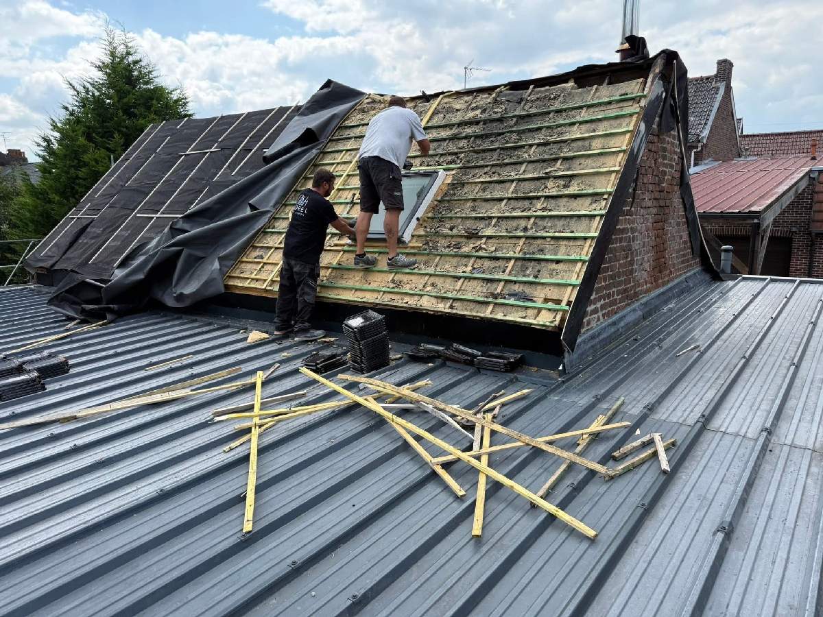 Avec plus de 6 ans d’expérience, nous réalisons la construction, la réfection et la rénovation de toitures inclinées, plates ou métalliques, selon les besoins de votre habitation. Notre équipe intervient également à La Louvière et Binche pour des chantiers variés : pose de tuiles et ardoises, réparation de charpentes, gouttières ou corniches.
